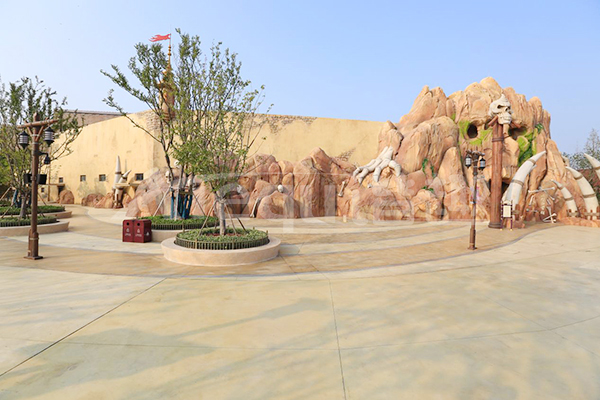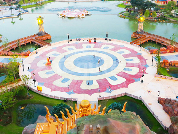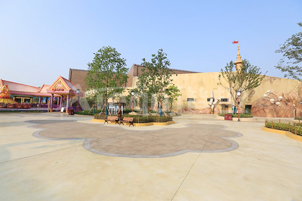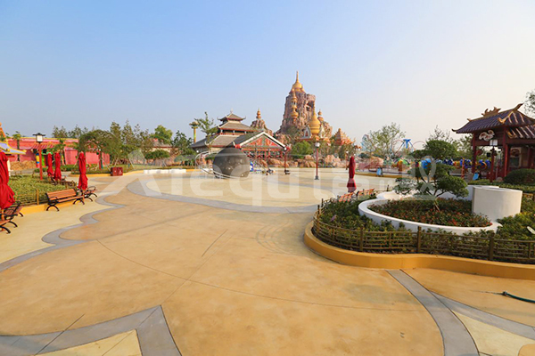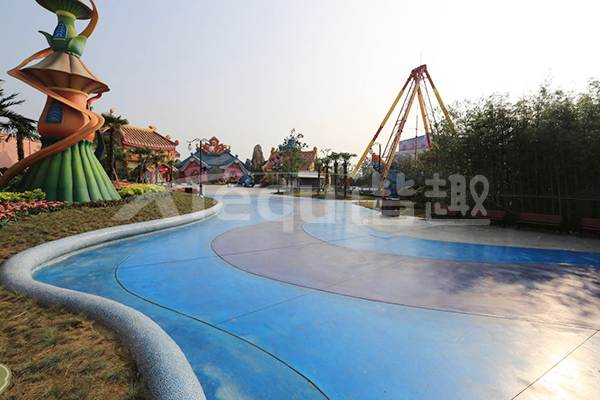 鋪裝類型:彩色混凝土洗砂面藝術地坪、壓印藝術地坪