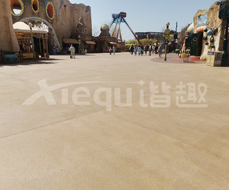 現如今隨著時代的變化,我們見過一些七八十年代成立的樂園至今還存活著營業著,這是一種情懷;是一種堅持,值得尊敬。雖然各種游樂設備,各種裝飾外包裝在更新換代,但園區的路面已經老舊,有的是普通的水泥路,有的是瀝青路,這已經跟不上時代的潮流了。園區的負責人很苦惱也想對路面進行改造,可他們無從下手,不知道更換成什么樣的路面才行。所以有些客戶找到我們幫著解決問題。