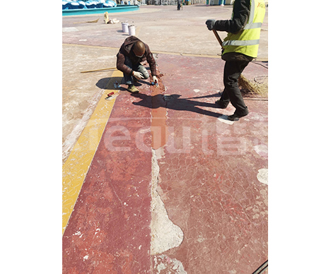 2.1、原舊路面清洗、打磨、修補、彩色密封